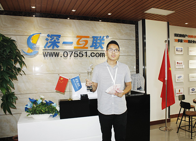 劉自平為商務一部業績銷售冠軍,評為業績之星,頒發獎杯和現金,以茲鼓勵!