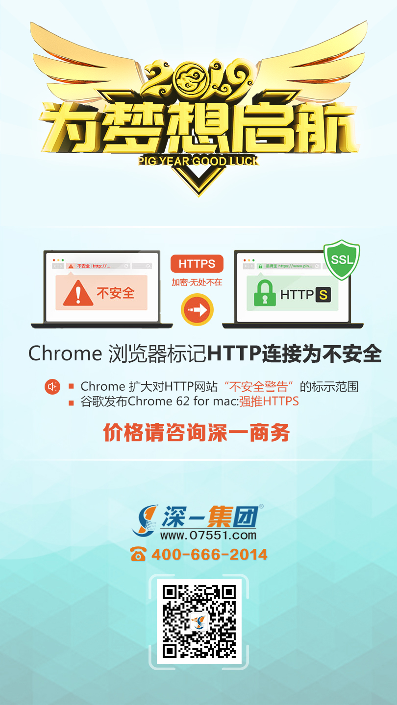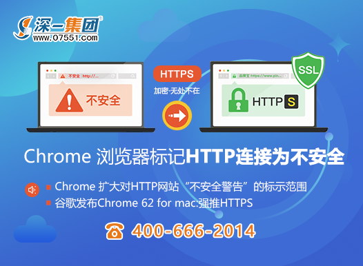 [深一SSL證書]HTTPS加密無處不在,谷歌Chronme瀏覽器2017年7月起標(biāo)記HTTP連接為不安全,SSL證書是您避不開的安全保障。詳細(xì)報(bào)價(jià)咨詢深一商務(wù)!